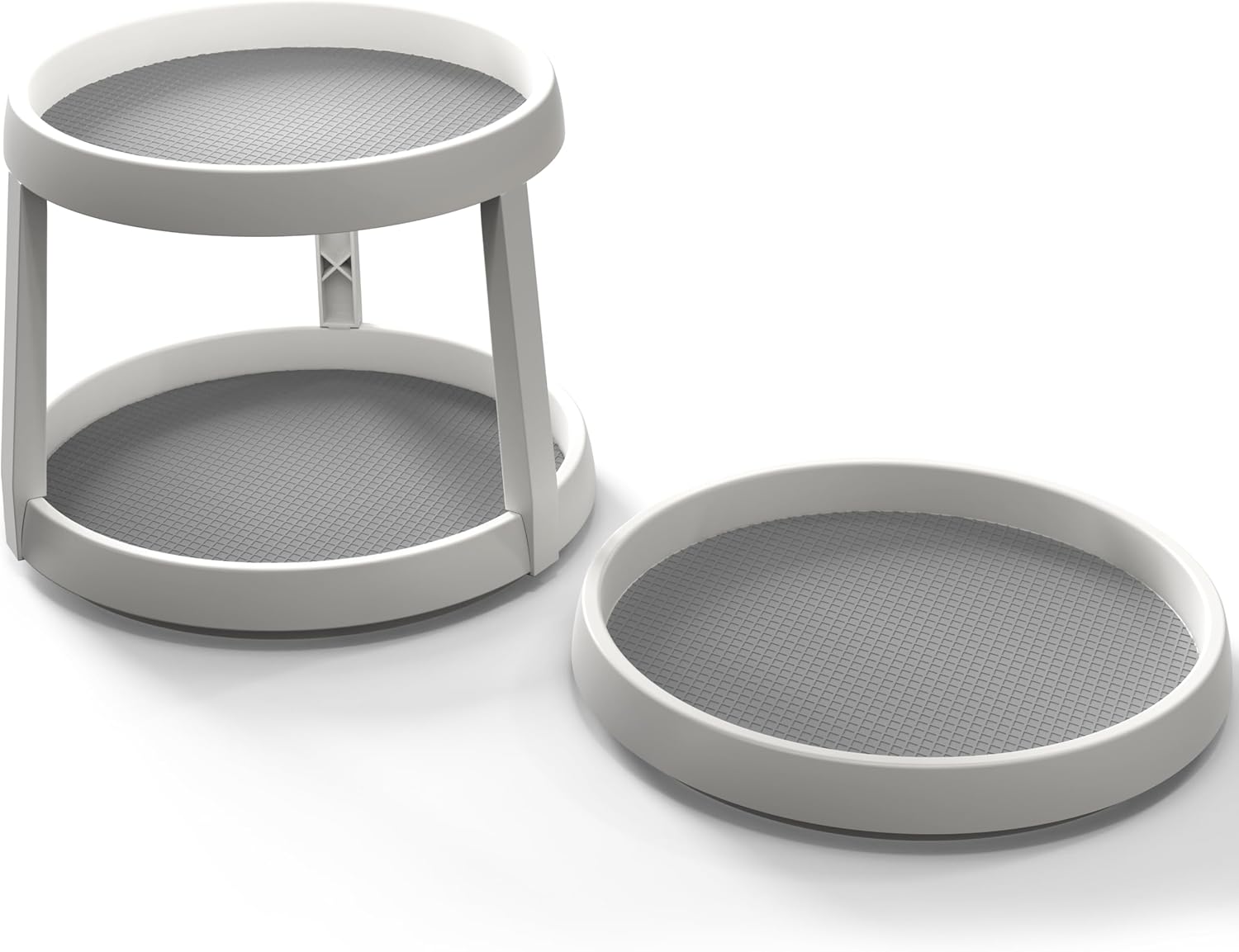 Simple Houseware 2-Tier 10-Inch Turntable Lazy Susan Spice Organizer, White/Gray